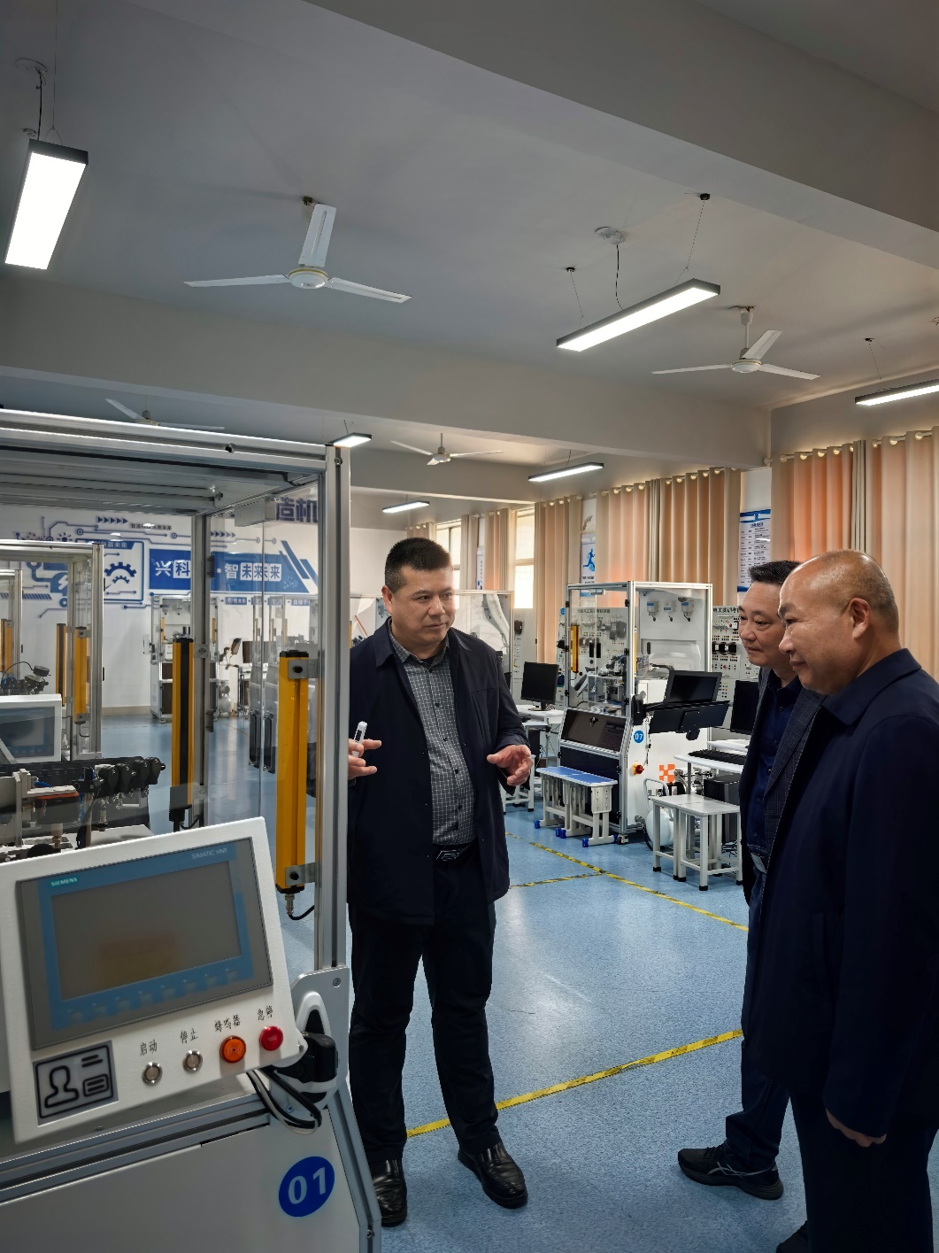 2025年10月28日下午,学院第三届汽车文化节开幕式结束后,信阳市汽车经销商商会党委书记余自锋、会长俞勇、秘书长祝风林一行到学院调研,参观实训室并开展交流座谈。此次座谈聚焦专业建设、校企合作及就业环境,旨在推动校企深度协同,为信阳汽车产业发展注入新动力。